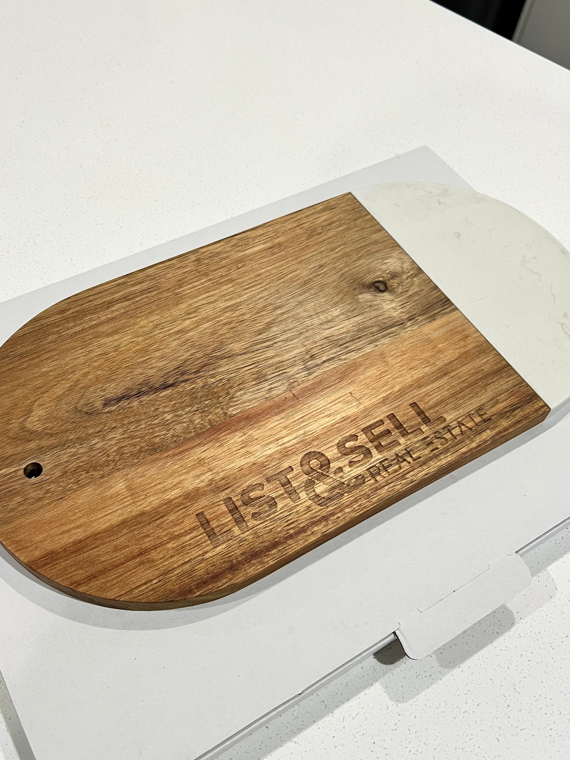 Crafted from rich acacia wood and sleek matte marble, this cheeseboard seamlessly combines rustic warmth with modern sophistication.